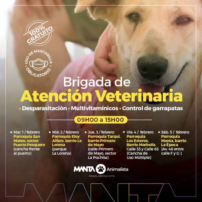 Precisamente durante los días de la presente semana (1 al 5 de febrero del 2022) una brigada veterinaria ha sido desplazada para cumplir esa misión en cinco diferentes lugares, tanto en la zona urbana cuanto en la zona rural del Cantón Manta. Y continuará después, semana tras semana, hasta alcanzar todos los rincones poblados.