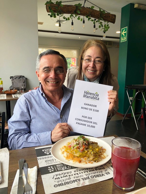 Para conmemorar este hito, La Herencia Manabita entregó una orden de consumo valorada en 100 dólares a la persona que pidió el “Pásame al otro lado # 10.000”. El ganador fue Rafael Silva, quien compartió este célebre momento acompañado de su familia en el local de Guayaquil.