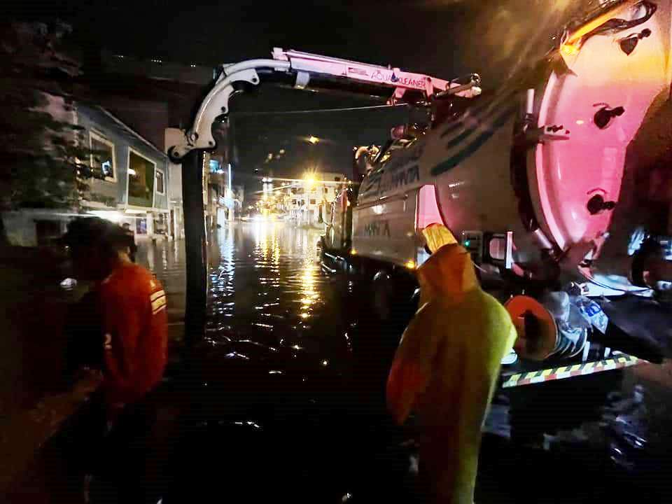 Personal dependiente de la empresa pública municipal Aguas de Manta (Antes EPAM), provisto de retroexcavadoras y un camión con bomba hidrosuccionadora, trabajó desde la madrugada en diversos puntos de la urbe con el propósito de retirar la basura que taponaba los sumideros. Hizo esto en la Avenida 10, entre calles 14 y 15, donde se logró destapar alcantarillas; y, en la Avenida de la Cultura, de donde retiró lodo.