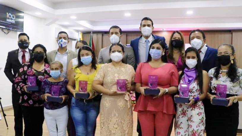 Fue una ocasión para reconocer públicamente los méritos comunitarios de 8 destacadas mujeres de Manta. Cada una de ellas recibió una presea con su nombre y la razón de obtenerla.