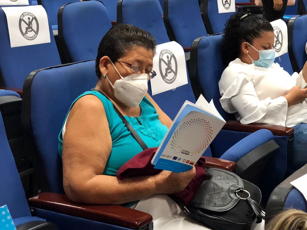 La presentación en Portoviejo se realizó en el auditorio de la Universidad San Gregorio, en el que estuvieron presentes Maddalena Masucci, agregada de Cooperación de la Unión Europea en Ecuador; Ana Elena Badilla, representante de ONU Mujeres Ecuador; Fernando Adames, agregado del Programa de las Naciones Unidas para el Desarrollo; y Leonardo Orlando Arteaga, prefecto de Manabí.
