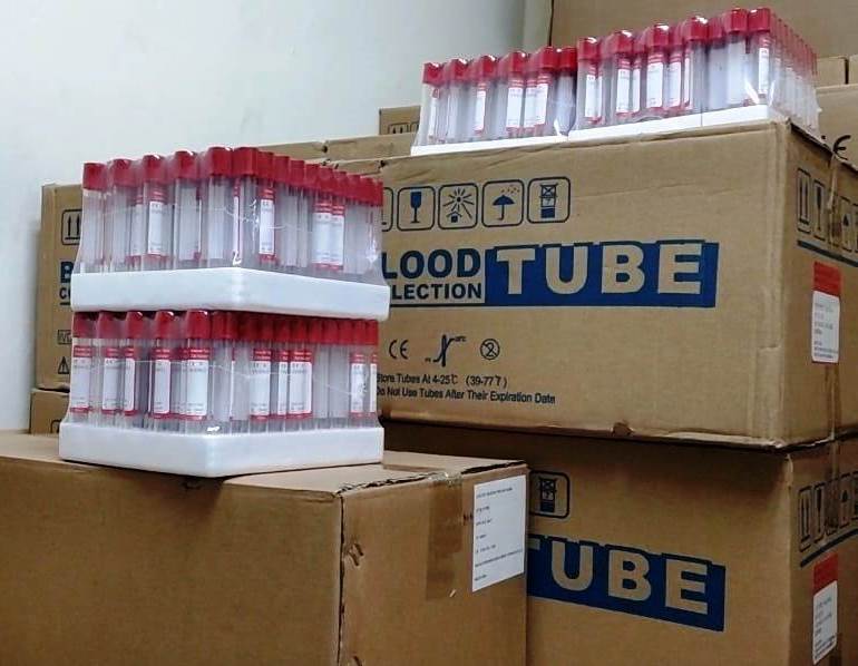 Así mismo, en una nueva recepción de insumos para laboratorio, llegaron a las bodegas del Distrito: tubos con tapas de color lila, roja y amarilla; tubos de ensayo de 5 ml y 10 ml; torniquetes; cubre objetos; lancetas automáticas y tubos para micro recolección de sangre, tapas roja y lila.