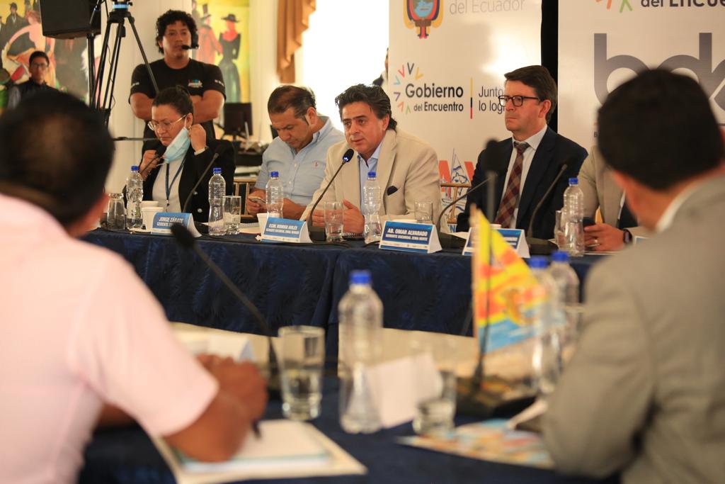 La reunión, promovida por el Gobierno nacional ecuatoriano, fue presidida por Homero Castanier, viceministro de Gobernabilidad; Marco Acosta, subgerente de Negocios del BDE; Dany Mite, alcalde de Playas; Álex Rojas, director ejecutivo de AME; y Angie Chávez, subsecretaria de Articulación Intergubernamental.