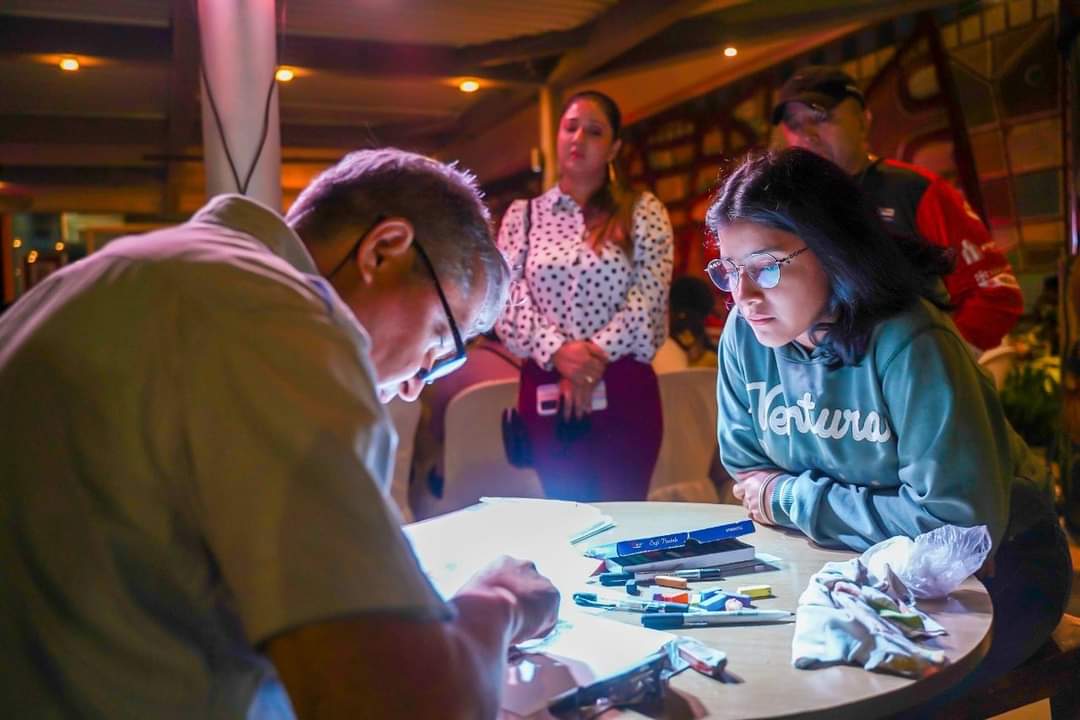 Quienes visitan la exposición encuentran, además, la gran oportunidad de ser caricaturizados, in situ y al instante, por el artista plástico Javier Macías, presente allí para que los visitantes retornen a casa con un lindo recuerdo.