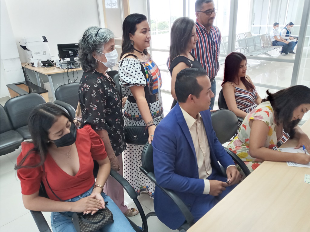 Primero tuvo lugar el matrimonio legal que es asentado por el Registro Civil del Ecuador, en este caso su dependencia que funciona en Manta. Ocurrió al mediodía del jueves 26 de mayo del 2022. Por parte de la novia actuó como testigo su hermana, Valentina; mientras que por el novio testificó la hermana de él, Tamara Palma Joza.