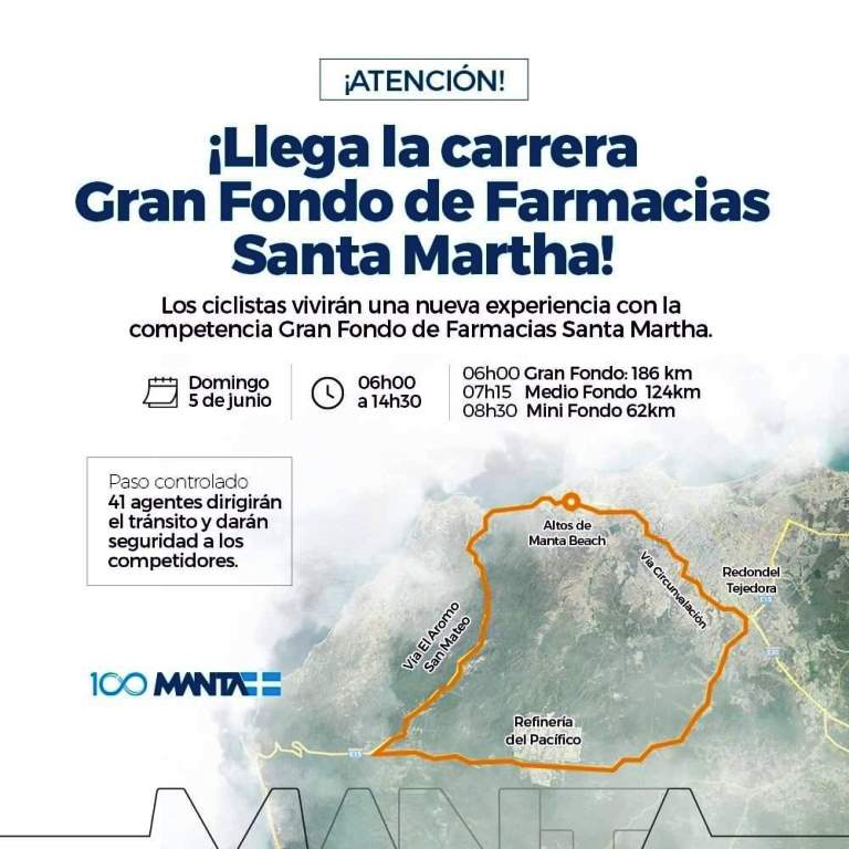 Al día siguiente, el domingo, es la competencia Gran Fondo de Farmacias Santa Martha, de 186 km de recorrido, que parte a las 06h00. Su organizador, Alfonso Pérez, expresó que participarán 500 deportistas nacionales, además de otros provenientes de Perú y Colombia.