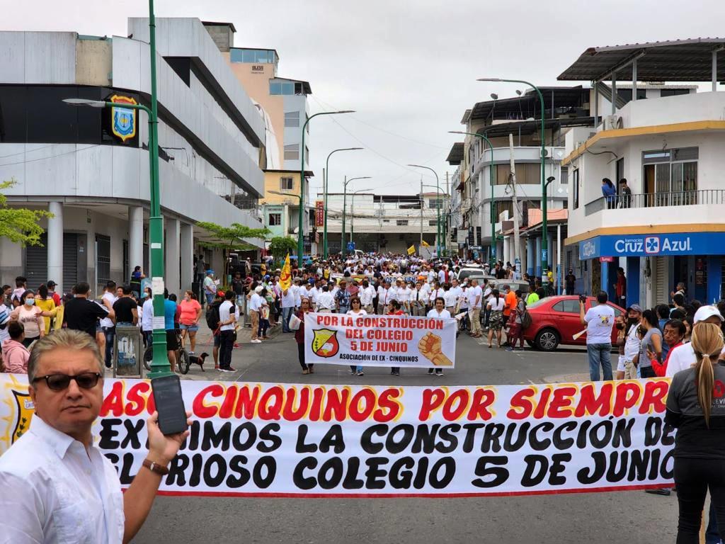 Ha llegado la hora en que los excinquinos volvamos a las calles para luchar por nuestra ciudad, como tantas veces hicimos en el pasado. La razón no admite fuerza, es evidente que la educación de Manta está en crisis; pero lo más condenable es que el Cinco de Junio no tenga un edificio digno”, dijo de su parte el excinquino, abogado Xavier Echeverría.