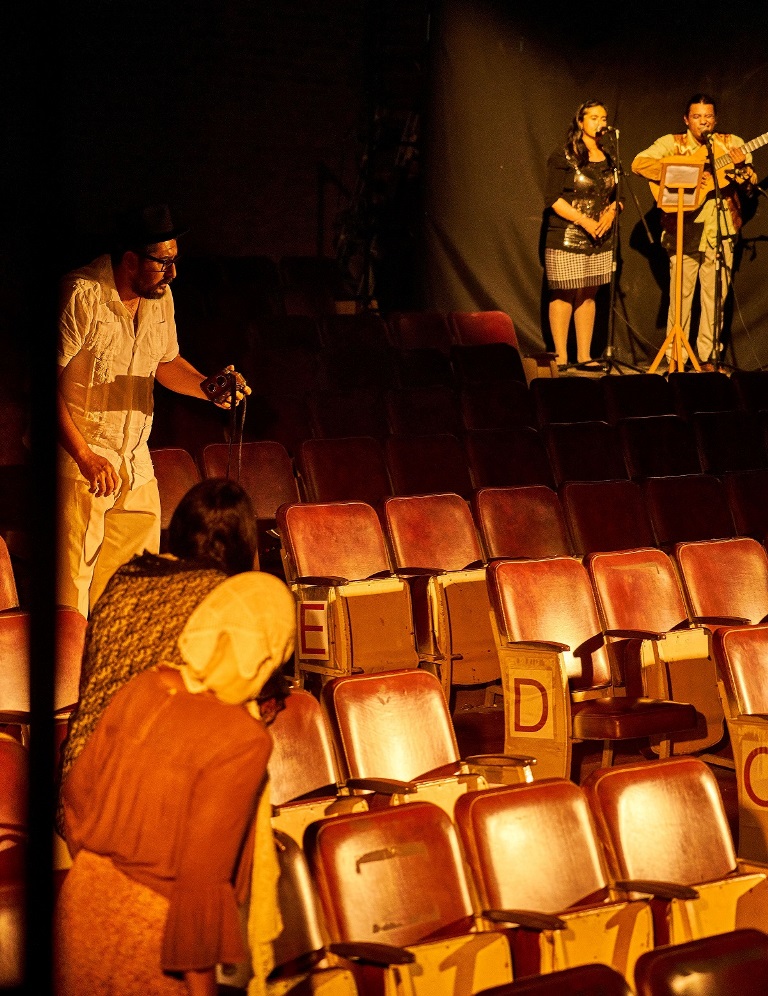 El esperado estreno de la obra en Manta colmó todas las expectativas. El público disfrutó de una puesta en escena innovadora, que combinó los audiovisuales, la música y la actuación. El espacio de La Trinchera se transformó: el público ocupó el lugar de los actores y personajes, mientras que estos contaron su relato escénico en la platea.