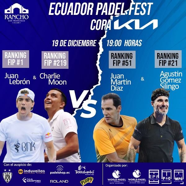 Cuatro de las mejores paletas de Ecuador y el mundo disputarán el juego “Ecuador Padel Fest Copa KIA”, el día lunes 19 de diciembre del 2022 en el Rancho San Francisco, próximo a la ciudad de Quito, Ecuador.
