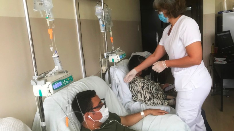 «Vengo desde hace muchos años a recibir el tratamiento que permite aminorar mis dolencias«, dijo la afiliada oriunda de Manta, mientras la enfermera le colocaba el suero con medicamentos.