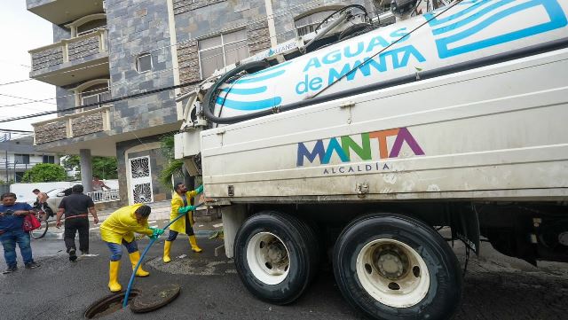 Aguas de Manta trabajó con 2 hidrosuccionadores comprados por la Administración cantonal en funciones, 2 retroexcavadoras y 5 bombas de achique, teniendo como principales objetivos la limpieza de sumideros en las parroquias Tarqui, Los Esteros y Manta; además de evacuar el agua introducida en viviendas.