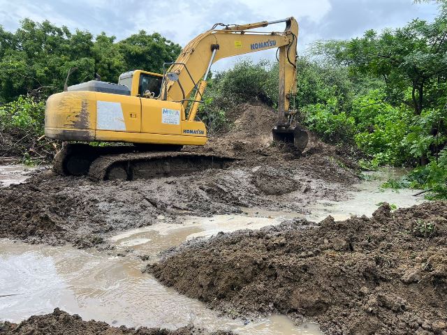 Con maquinaria pesada, de la Dirección de Obras Públicas, también se realizó la limpieza de sumideros, desalojo de material y recolección de sedimentos en sectores urbanos; y en los rurales, como Santa Marianita, Playa Bonita y Las Piñas.