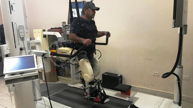 El robot, llamado Lokomat, es parte de las terapias que se prestan en el Hospital General Portoviejo del Instituto Ecuatoriano de Seguridad Social (IESS).