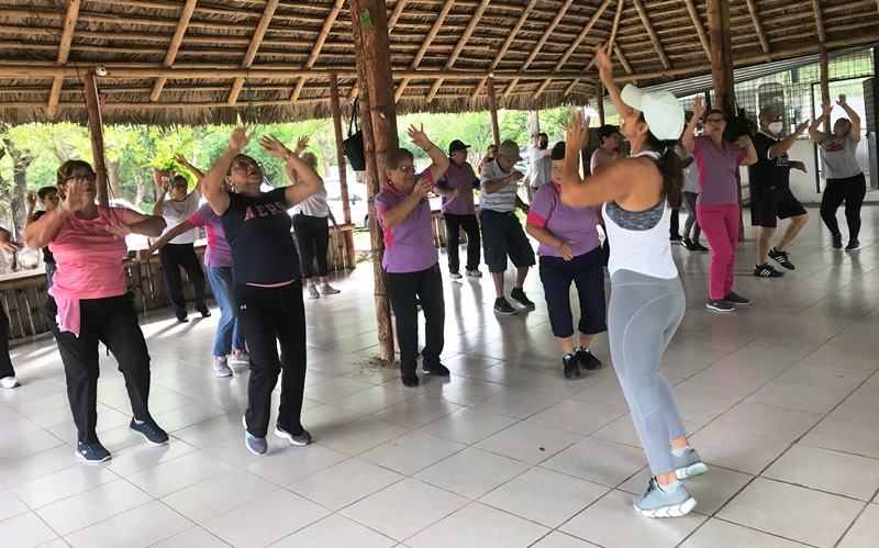 Mientras escucha el sonido musical de una cumbia (género musical de origen colombiano), el jubilado Carlos -de más de 70 años de edad- sigue los movimientos corporales de la instructora del taller de baile, que rítmicamente se contonea de izquierda a derecha y del frente hacia atrás.