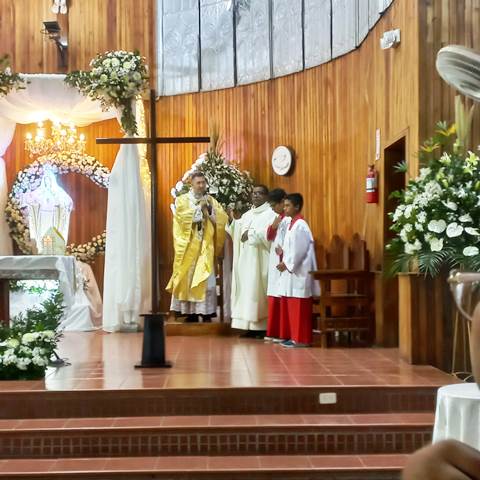 Luego, a las 19h00, el arzobispo de Manabí, Eduardo Castillo Pino, ofició la misa del sábado previo al día de la virgen de La Merced, fiesta que celebran cada 24 de septiembre quienes profesan la religión católica en Bahía de Caráquez, cabecera cantonal de Sucre.