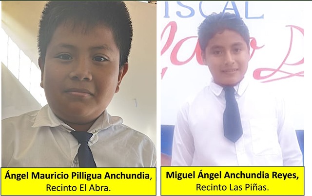 Miguel Ángel Anchundia Reyes (13 años), del Recinto Las Piñas; y Ángel Mauricio Pilligua Anchundia (11 años), del Recinto El Abra.
