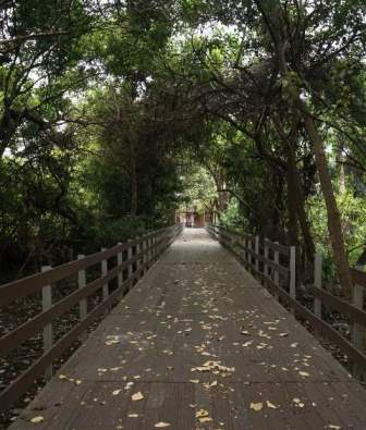 Los pasadizos elevados en medio del bosque de la Isla Santay, zona céntrica de la ciudad de Guayaquil (Ecuador), están cambiando sus viejos y desgastados tablones de madera plástica por unos nuevos hechos con caucho de neumáticos reciclados.