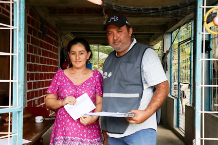 Funcionarios del CNE (Consejo Nacional Electoral) en Manabí notifican en domicilio a las personas seleccionadas como miembros de las juntas receptoras del voto (MJRV) para las elecciones en la Parroquia Rural Sosote del Cantón Rocafuerte. Para esto tienen que salir a buscar la vivienda de cada persona escogida y entregarle el nombramiento que corresponde.