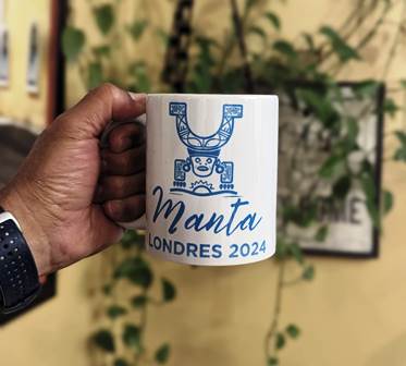 Dijo que ya están listas las camisetas y las gorras con el isotipo de la Silla Manteña, al igual que las tazas conmemorativas que llevan inscrita la frase Manta – Londres 2024, artículos que fueron elaborados en Manta.