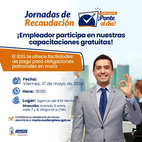 “Esta es una gran oportunidad que impulsa la actual administración, para que los empleadores se pongan al día con el IESS; con cuotas mensuales muy bajas, hasta por 72 meses; cuota inicial mínima y sin garantía”, señaló Vicente Izurieta, director provincial del IESS en Manabí.