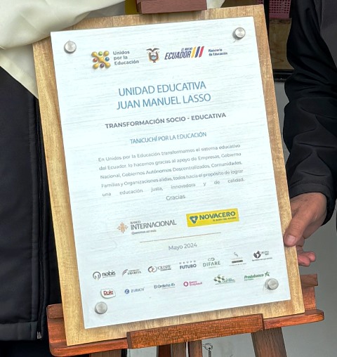 Mariuxi Villacrés, gerente de Sostenibilidad en la empresa contribuyente, justifica el acto filantrópico: “Para Novacero, la educación es un pilar fundamental que fortalece el bienestar y desarrollo sostenible de las personas. Apostamos por este proyecto para mejorar la calidad de vida mediante una educación justa e innovadora, que nos permita además mantener la cercanía con nuestra comunidad vecina a nuestra planta de Lasso, en la cual trabajan más de 620 personas y el 94 % de ellos viven a los alrededores. (sic)