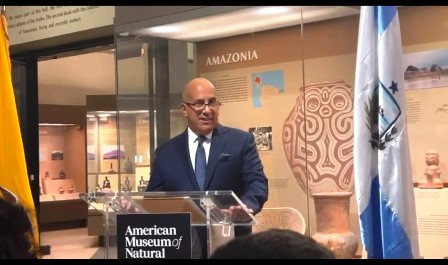 El jueves 8 de agosto, en el Museo Americano de Historia Natural de Nueva York, se pronunció el discurso de exaltación a la silla pétrea ceremonial, de parte del intelectual mantense Vladimir Zambrano, quien destacó los atributos históricos de la gran civilización primigenia y lo que representa para los pueblos poscoloniales.