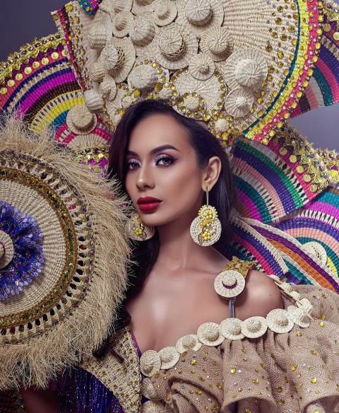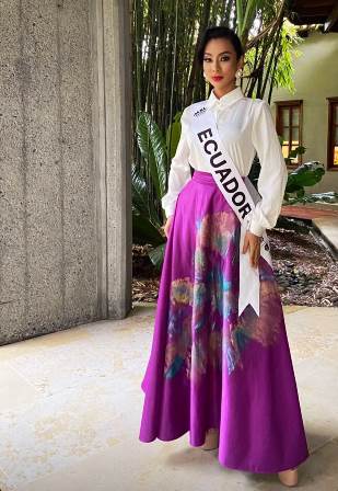 La señorita ecuatoriana desfiló con un vestido de gala diseñado por Jefferson Vera. Y el traje nacional típico que mostró es creación de Manolo Loor.