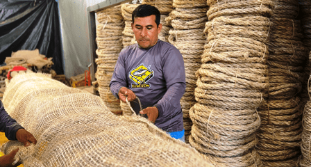 Las telas de abacá son elaboradas por artesanos de la sierra del país, integrando así a comunidades rurales al proceso pesquero de atunes.