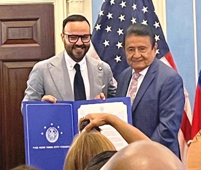 En medio del crisol de nacionalidades, la ecuatoriana “tiene una historia de gran significancia en Nueva York”, agregó el alcalde, al tiempo de subrayar el liderazgo de Moya como “el primer concejal ecuatoriano en la historia del Concejo Municipal neoyorquino y el primero de este origen en ser electo a una función pública en Estados Unidos”.