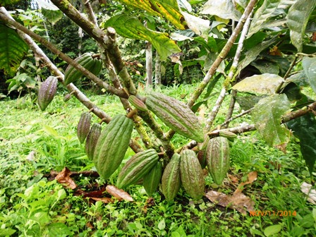 Árbol de cacao con sus mazorcas tiernas (Agrocalidad).
