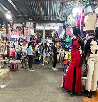 Separada por una calle central está la otra parte, donde se agrupan las pequeñas tiendas alojadas bajo cobertizos lineales. Es la más popular y económica.